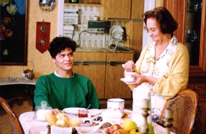 Brasil 2000, dirección: Tata Amaral; guión: J.-C. Bernadet, F. Bonassi, T. Amaral; música: Livio Tragtenberg, Wilson Sukorski; con Laura Cardoso, Fransérgio Araujo, Ana Lúcia Tore, v.o. con subt. en alemán, 83 min. Con sus 24 aņos Raimundo sigue viviendo en la casa de su madre, con la cual tiene una relación inusitadamente tierna y casi neurótica. A su madre Selma, una enfermera jubilada, se le derrumba el mundo cuando se da cuenta, por el comportamiento de su hijo, que éste debe de tener una compaņera. Hasta ahora su rutina diaria consistía en las preocupaciones por su hijo. Un día Raimundo trae a un hombre herido a la casa y le exige a Selma tratarlo. La relación edipa de los dos pierde el equilibrio. Los enfrentamientos se hacen cada vez más agresivos hasta que el velo de amor se rompe y Selma siente que detrás de ésto hay más que simples celos. De repente se ve inmiscuida en un crimen y tiene que tomar una decisión. El melodrama de madre e hijo nos ofrece una visión de la "generación perdida" y sin perspectivas de la juventud brasilera actual. |